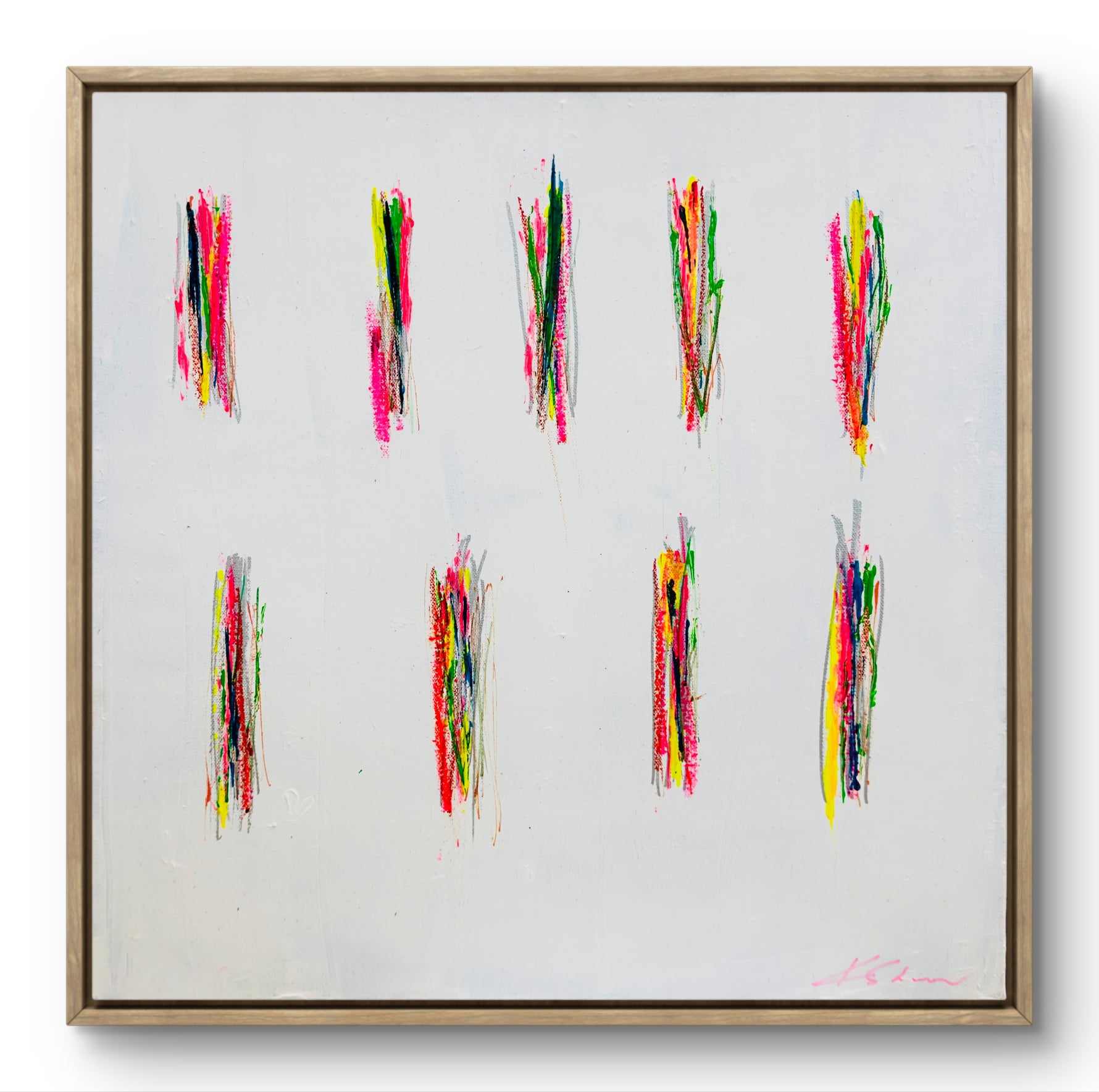 The wild one. Layered, streaked, and full of texture, this piece cranks up the volume with multicolored scribbles that refuse to be contained. Messy in all the right ways—like crayons that colored outside the lines and never looked back.